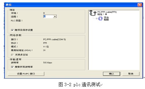 (2)點擊瀏覽條中的通訊欄和plc進行通訊測試。如圖3-2所示: