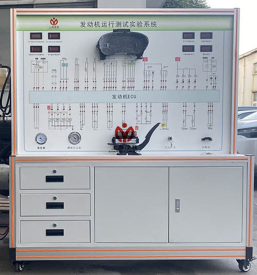 拆裝翻轉(zhuǎn)臺(tái)架由電控汽油發(fā)動(dòng)機(jī)總成和可做360度翻轉(zhuǎn)的發(fā)動(dòng)機(jī)拆裝架組成,運(yùn)行檢測控制臺(tái)由控制面板、發(fā)動(dòng)機(jī)電控單元、冷卻系統(tǒng)、供油系統(tǒng)、蓄電池等組成;