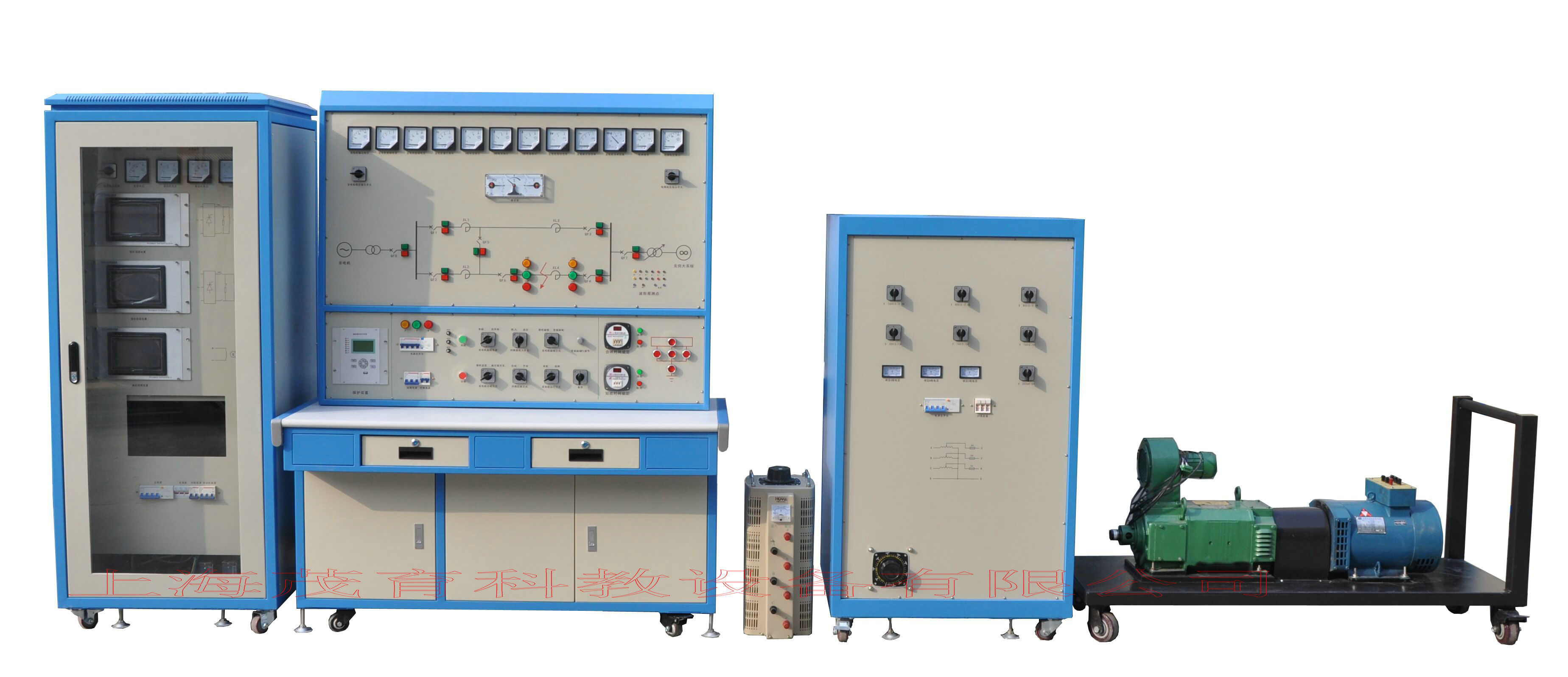 電力系統(tǒng)綜合自動化技能實訓(xùn)考核平臺由五部分組成:同步發(fā)電機(jī)組、機(jī)組控制柜、輸電線路及監(jiān)視保護(hù)屏、無窮大電力系統(tǒng)和阻抗負(fù)載。對發(fā)電廠中常用的自動裝置、發(fā)電廠監(jiān)控、電力系統(tǒng)運(yùn)行、繼電保護(hù)等教學(xué)內(nèi)容進(jìn)行操作、測試和試驗。裝置采用固定式結(jié)構(gòu)。本實訓(xùn)平臺適用于高校、中專、技校電力、電氣、自動化類各專業(yè)相關(guān)課程的實訓(xùn)與實驗,也可用于電力行業(yè)對從事發(fā)電人員的培訓(xùn)。