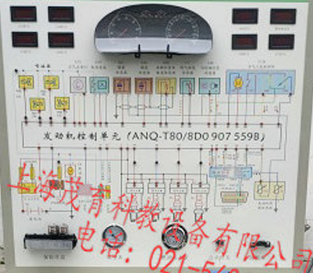 ②工作原理展示。實(shí)驗(yàn)臺(tái)控制面板上的電路圖顯示了發(fā)動(dòng)機(jī)電控系統(tǒng)的工作原理;各種儀表的讀數(shù)表示發(fā)動(dòng)機(jī)的運(yùn)轉(zhuǎn)狀態(tài),幫助學(xué)生了解電控發(fā)動(dòng)機(jī)的工作過(guò)程。