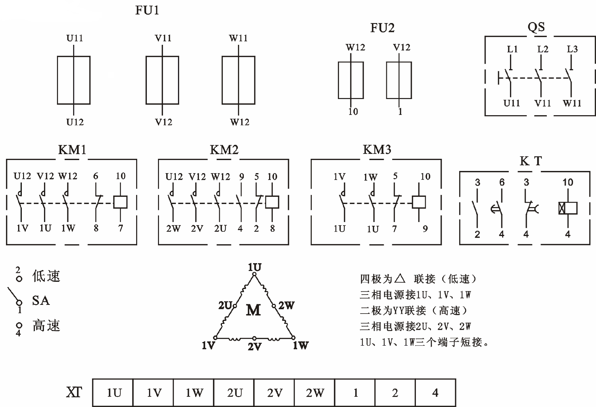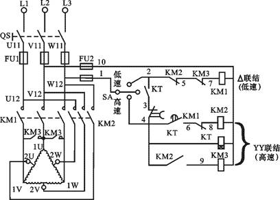| M | 雙速異步電動機(jī) | WD24 | UN380V IN0.6A | 1 |
