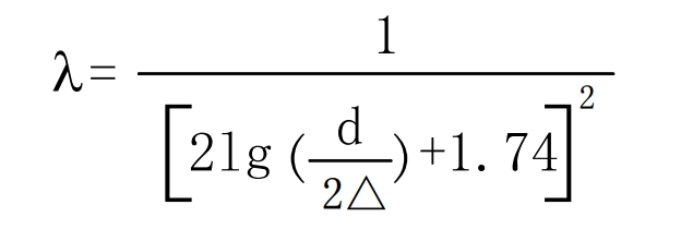 4)對于在紊流光滑區(qū)和紊流粗糙管區(qū)之間存在過渡區(qū),沿程水頭損失系數λ與 雷諾數和粗糙度都有關。