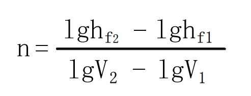 將從圖紙上求得n值與已知各流區(qū)的n值(即層流 n=1,光滑管流區(qū)n=1.75,粗糙管紊流區(qū)n=2.0,紊流過渡區(qū) 1.75<n<2.0)進行比較,確定流態(tài)區(qū)。